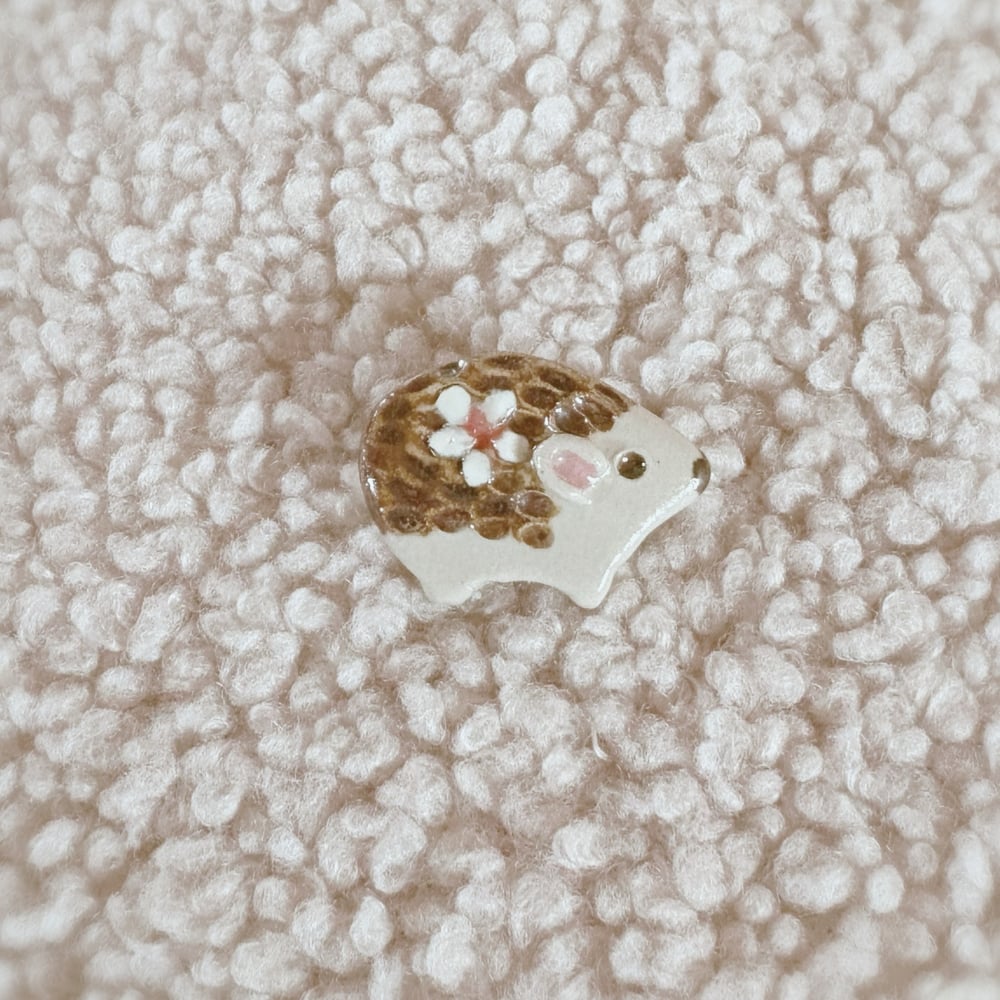 Broche façonnée à la main Réalisée avec du grès blanc Décor petite fleur blanche Cuisson à haute température Taille mini