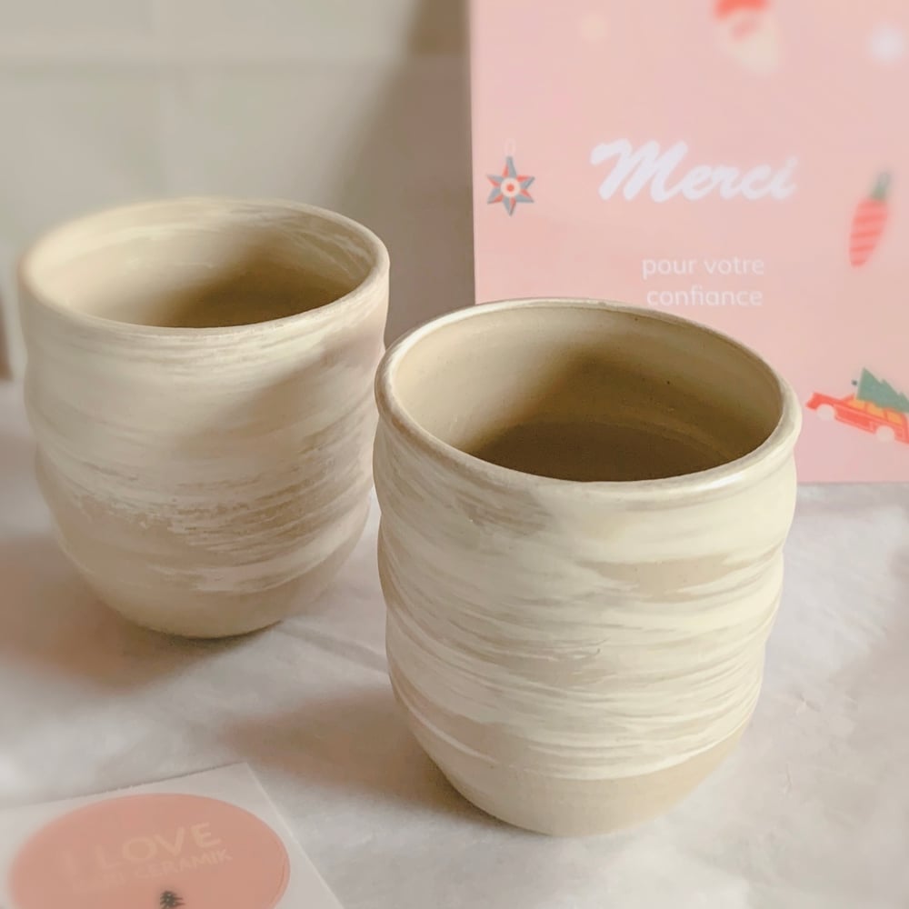 Petites tasses façonnées à la main Réalisée avec du grès roux Décor au pinceau Cuisson à haute température Deux tasses
